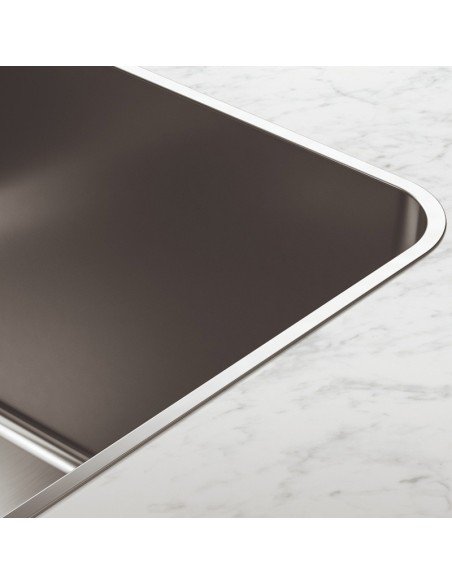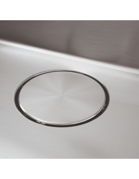 Lavaplatos sobre cubierta o a ras, acero inox, cuba grande, dimensiones 71 x 41 cms., bordes internos redondeados que impiden que la suciedad del agua se incruste. Nuestra línea de lavaplatos Mythos se fabrican en Suiza, de manera artesanal y con una tecnología que los hace poseedores de estética satinada mate, sin igual, con enorme resistencia, durabilidad y fácil limpieza. Este lavaplatos obtuvo Premio RED DOT DESIGN AWARD, destacado como Mejor Diseño 2020. Lavaplatos Acero Satinado, Desagüe y embellecedor acero inox. *